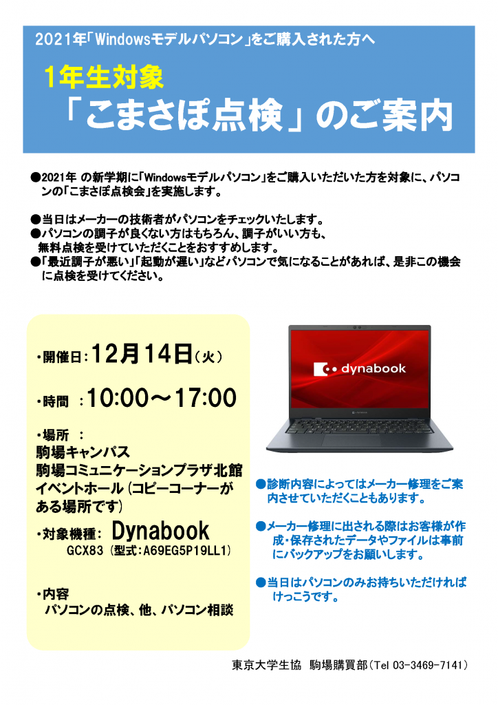 Windowsモデルパソコン(Dynabook)購入者を対象としたパソコン点検会を実施致します。※(2020年)(2021年)購入者対象