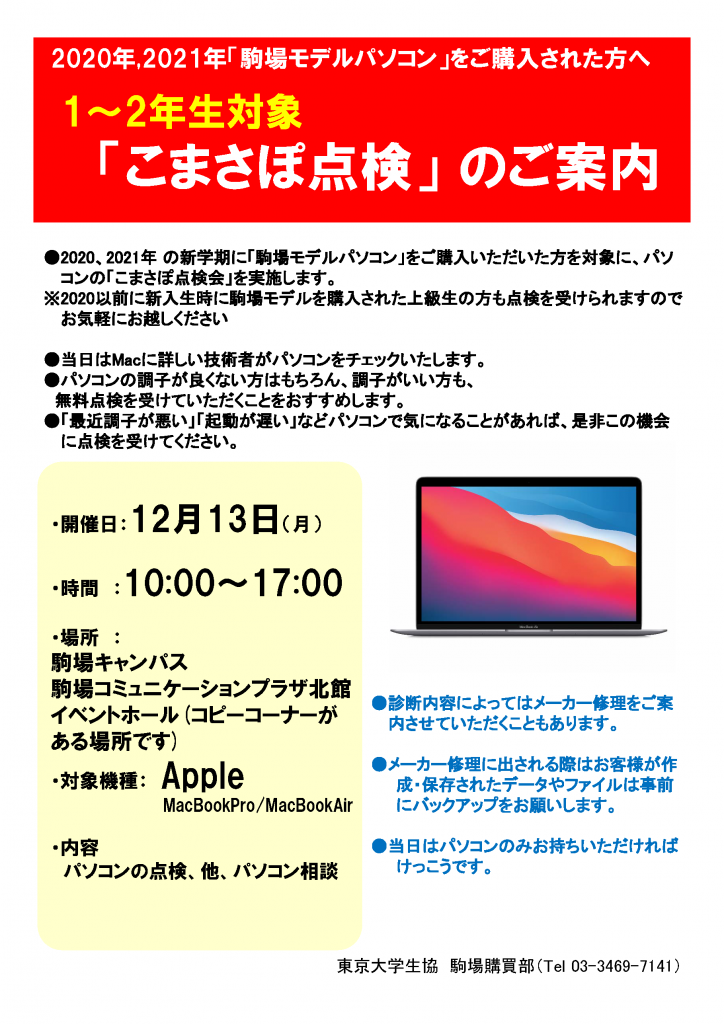 駒場モデルパソコンMac:2021年 12/13(月)10:00~17:00