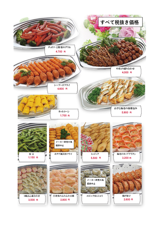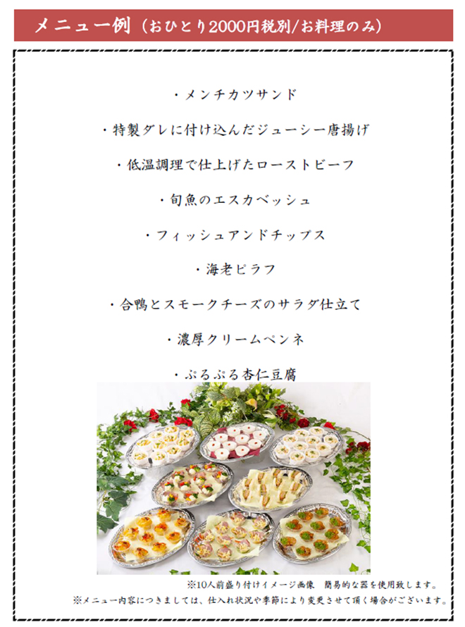 ※オードブル1皿(5人前)ご注文毎にお皿・箸5つ付