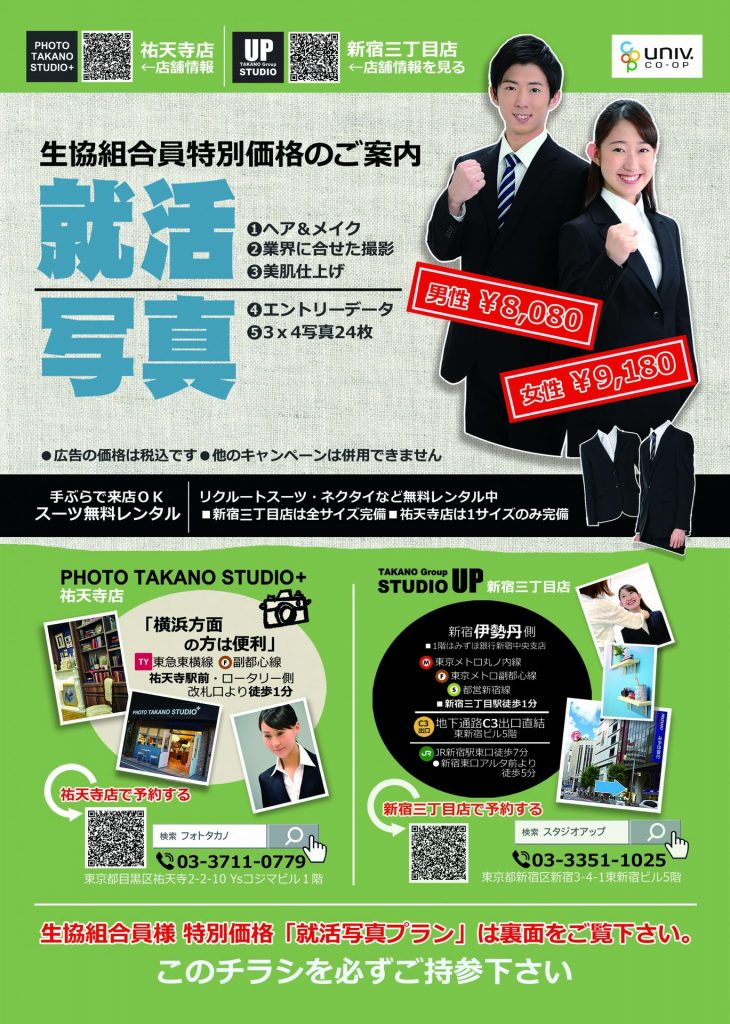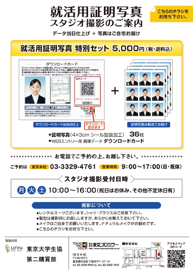 大学外のスタジオでの撮影を2社ご用意しておりますので、ぜひご利用をお願い致します。