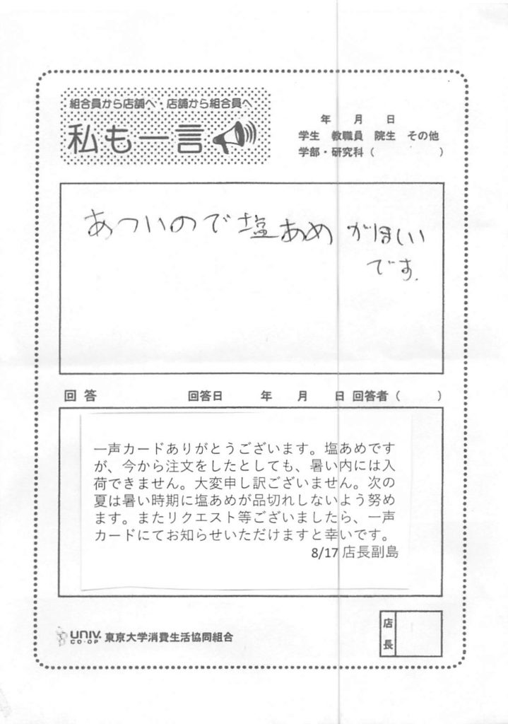 就像在 Komaba 合作社一样,在关门前一小时开始营业……