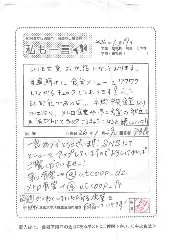 Metro Cafeteria 和 Second Cafeteria 的菜单现已在合作社网站上公布……